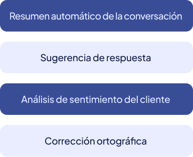 • Inteligencia Artificial de atención disponible 24/7 para responder preguntas y mensajes.
